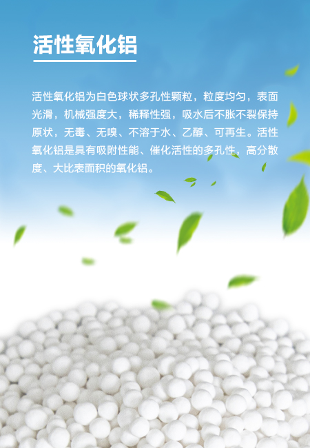 活性氧化鋁活性氧化鋁為白色球狀多孔性顆粒,粒度均勻,表面光滑,機械強度大,稀釋性強,吸水后不脹不裂保持原狀,無毒、無嗅、不溶于水、乙醇、可再