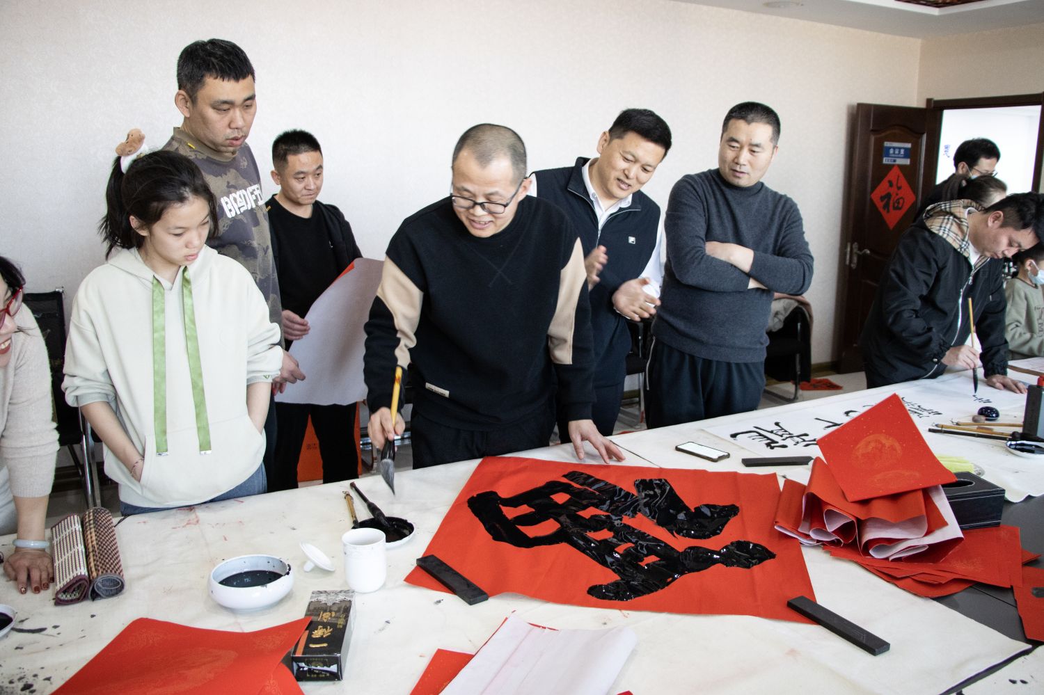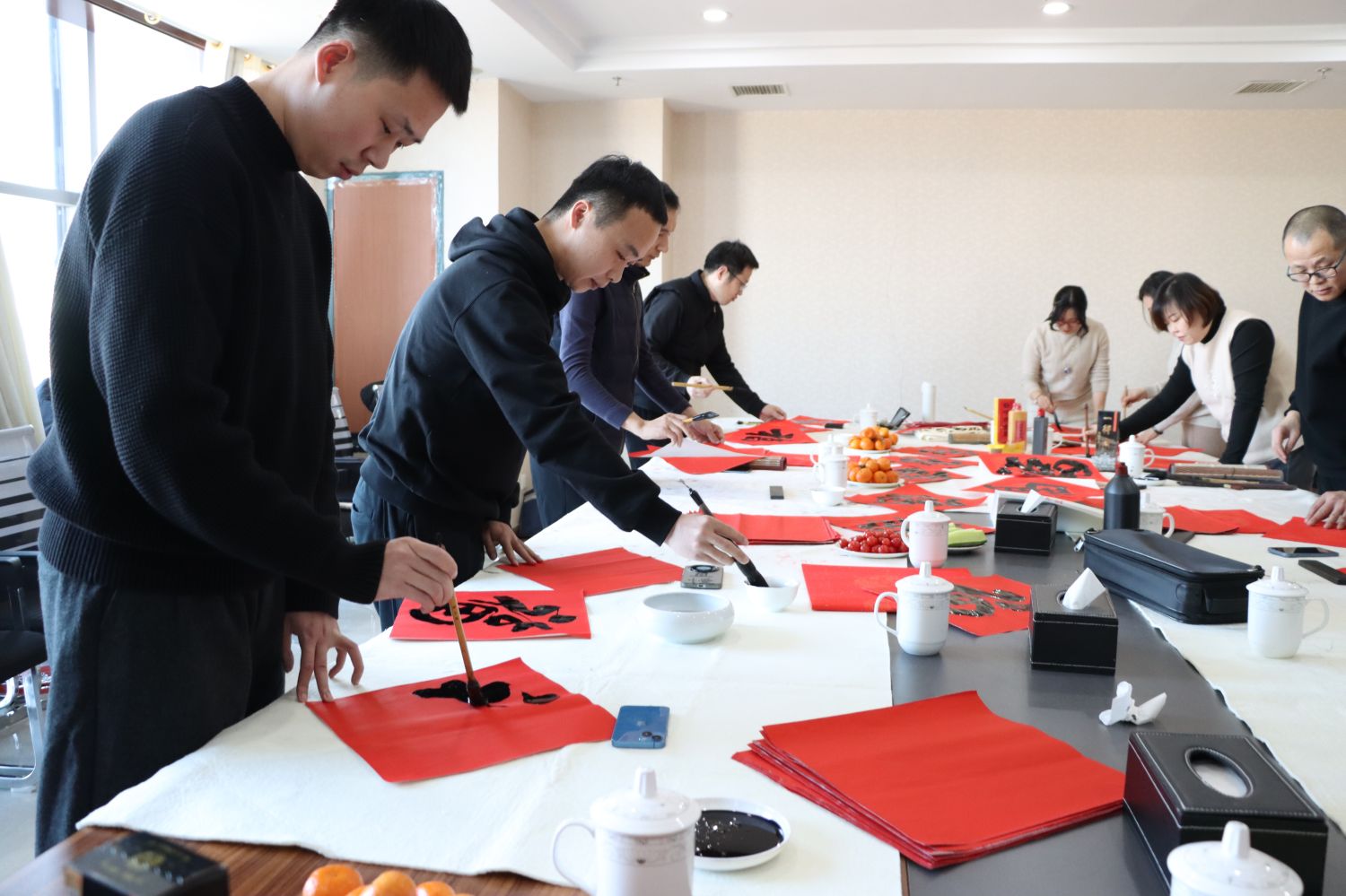 董事長代春龍及公司書法愛好者參加活動,濰坊青年書協顧問鐘毅,青年主席王清平,副主席張華堂、孫勇、楊明遠,主席團成員齊小嬌、劉之群,副秘書長徐東升、李苗苗,理事李翠、趙福麟等書法家受邀共同參與。