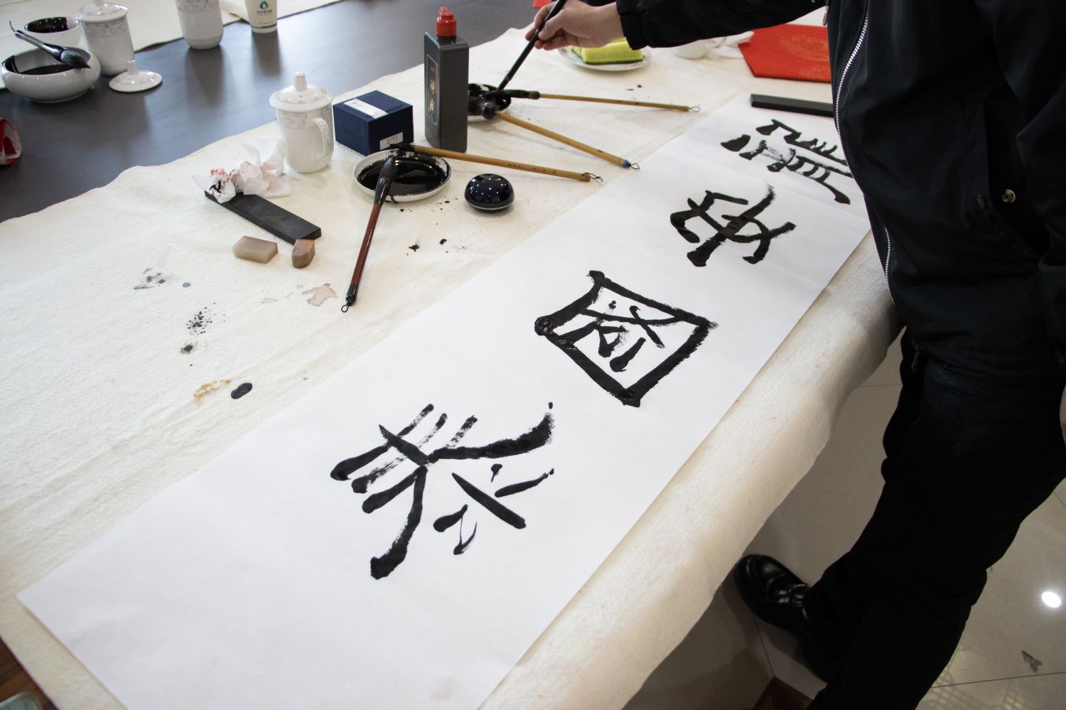活動現場布置得古色古香,筆墨紙硯一應俱全。書法愛好者們齊聚一堂,歡聲笑語,共享這一文化盛宴。在溫馨祥和的氛圍中,參與者們揮毫潑墨,書寫著對幸福生活的美好祝福,祈福祖國國泰民安。他們的作品或行云流水,或婉約秀麗,展現出了中華書法藝術的獨特魅力?,F場觀眾紛紛駐足欣賞,贊嘆不已。